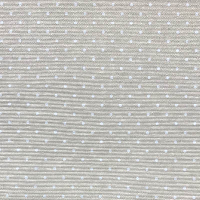 La tela de Antimanchas Beige Topo Blanco tiene un estampado de topos blancos con fondo de color beige a lo largo de todo el tejido.