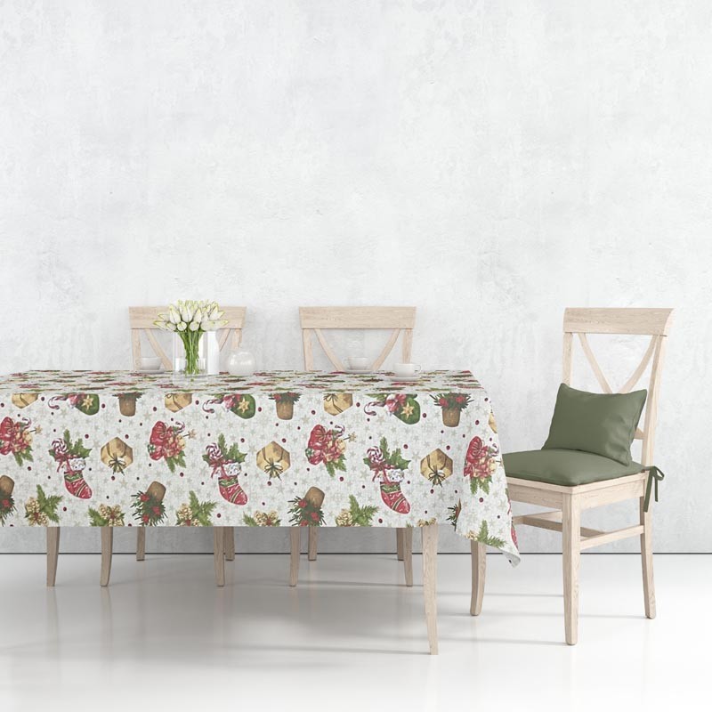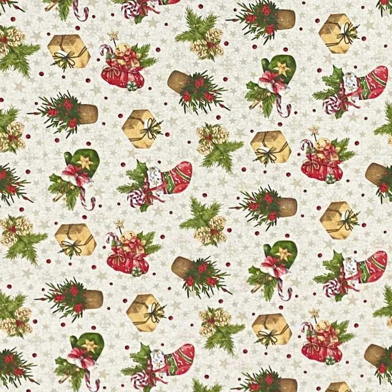 La tela de loneta Livia tiene un estampado de navidad a lo largo de todo el tejido.